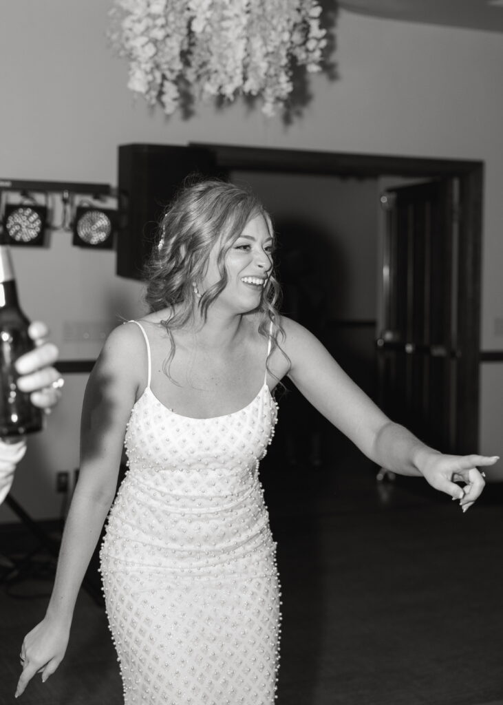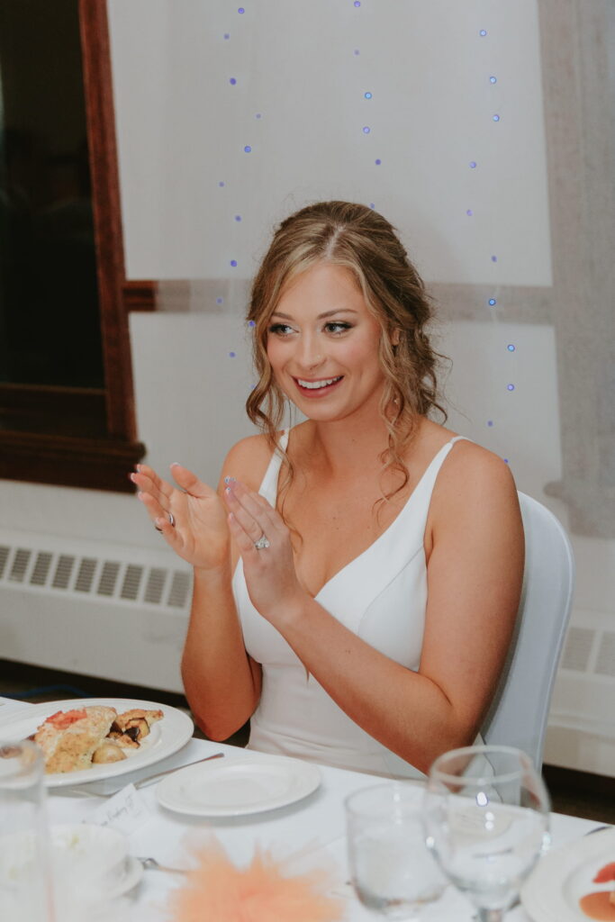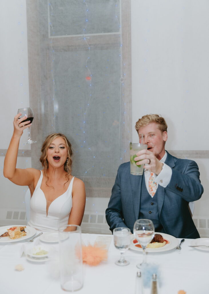 After cocktail hour, guests were seated and were served plated sit down dinner. The speeches were directly after and they were around 3 minutes each. They were so fun and sweet too. After that they did first dances, parent dances, and then grandparents polka. Finally, the dance floor was open and Morgan and her wedding party handed out glowsticks , glow in the dark markers, and black lights came on. It turned into the most fun and rave-like reception. Morgan also changed into a reception dress after the grandparents polka which was so fun and totally her. Honestly loved this reception so much and it was one of the coolest ones I’ve seen!